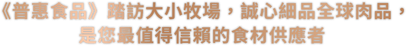 我們不只為了品質(zhì)不畏困難的走訪全球大小農(nóng)牧場!我們更擁有著強(qiáng)大的貿(mào)易團(tuán)隊提供您最專業(yè)的國際肉品價格走勢的分析讓您不必再畏懼市場的起伏不定!而我們的專業(yè)與35年來對品質(zhì)的堅持,更使我們成為國際肉品大廠指定的代理商。